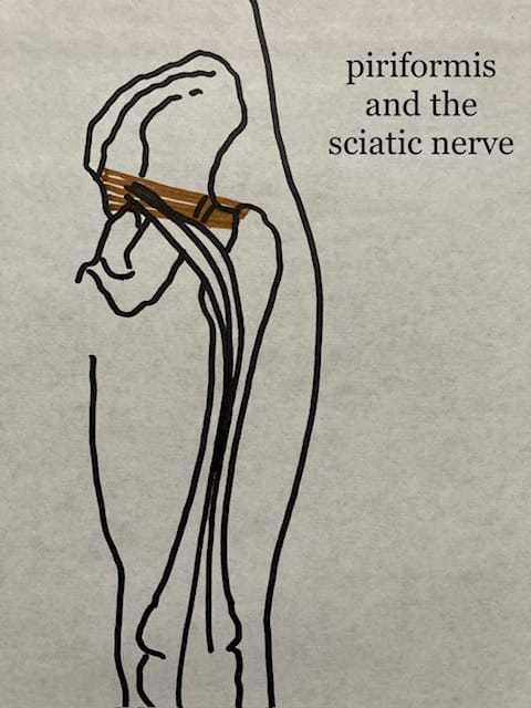 When the sciatic nerve is impinged by a tight piriformis muscle, it causes pain in the buttocks and down the back of the leg. The piriformis muscle lies deep to the gluteal muscles, and massage therapy and home stretching can bring relief to a muscular cause of sciatica. However, if the sciatic nerve is impinged by a compressed or misaligned spine, massage therapy can only do so much; the client is better served by an osteopath or chiropractor.